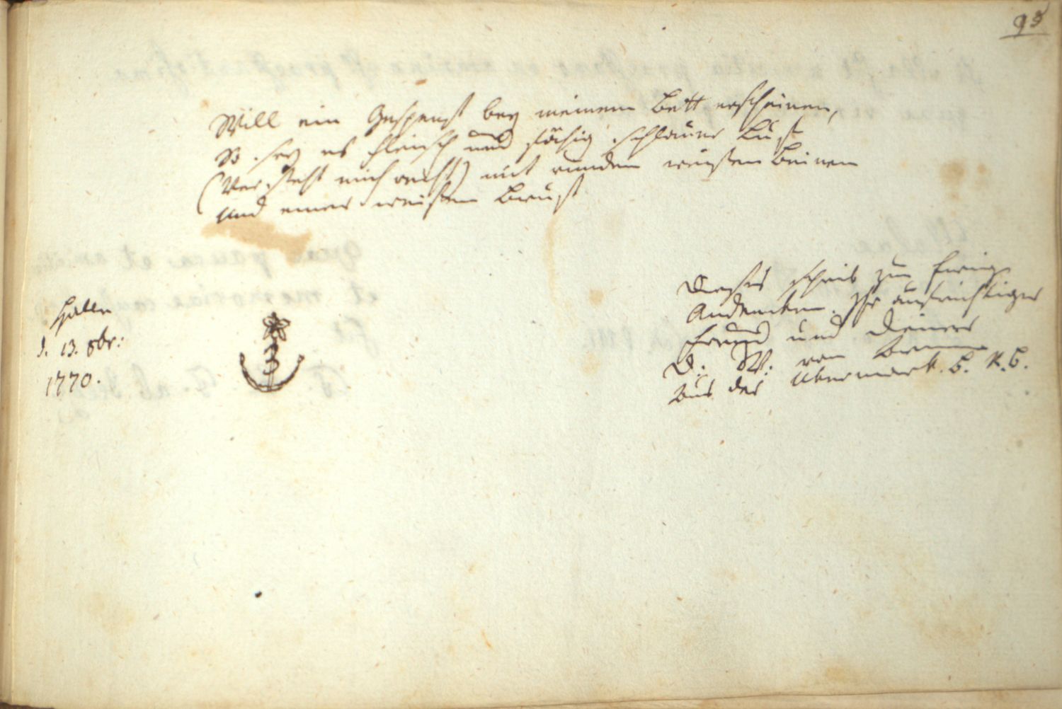 Fast alle Eintragungen von adligen Kommilitonen in Halle, viele in Latein oder Französisch. Vertreten sind die Namen D. W. v. Arnim ("aus der Ukermark"), F. H. J. v. Jeetze, August v. Schlabrendorff, Ludwig Wilhelm Graf v. Gessler, E. v. Berlepsch, E. F. Vogt ("aus Berlin, Hofmeister der H. v. Arnim aus Sukow"), August Wilhelm v. Bismarck (aus Berlin), v. Massow, A. v. Hagen, v. Koeckritz, Carl Friedrich v. Berlepsch, J. G. Fritsche (aus Potsdam), C. D. v. Storch, Georg Friedrich Zimmermann, G. O. F. Rappard, F. F. v. Schierstedt, Wilhelm von Querenheimb, v. Sydow, Friedrich Chr. August von Arnim, Franz Carl Ladislaus v. Mosel, N. C. F. v. Burghausen, C. L. Curtius, Jean Thornton (aus London), v. Krosigk, Kircheisen (Jurist), Joh. Friedrich Lorenz, G. F. L. v. Uslar, Johann Andreas Riedel, G. A. und J. A. v. Schropp (aus Schlesien), F. H. Matthießen (1768 "von der Insul Sylt, aus Dännemark"), L. Hermann aus Dessau, Baron v. Dürckheim, v. Alvensleben, Ernst Ludwig Heim und viele andere. - Leider fehlen gemäß Paginierung 25 Blatt.