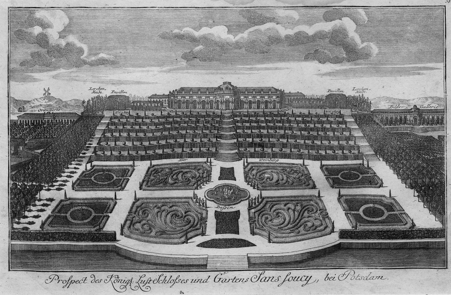 Prospect des Königl. Luft Schlosses und Gartens Sans Soucs