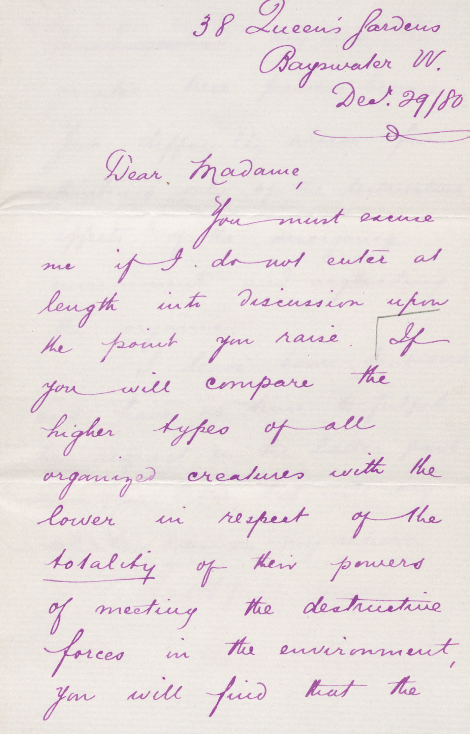 (1820-1903)Brief über seine Evolutionstheorie. 1880