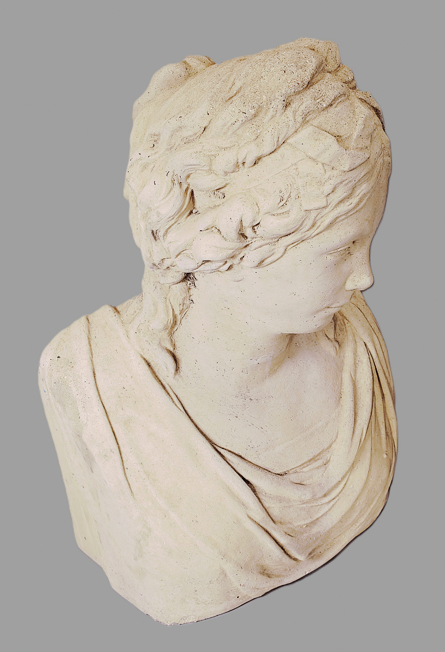 Schadow, Johann Gottfried. Büste der Friederike, Herzogin zu Mecklenburg aus der "Prinzessinnengruppe". Skulptur im Steingussverfahren. Höhe ca. 52 cm. Breite ca. 35 cm. Tiefe ca. 26 cm. Gewicht ca. 50 kg. England 20. Jahrhundert.