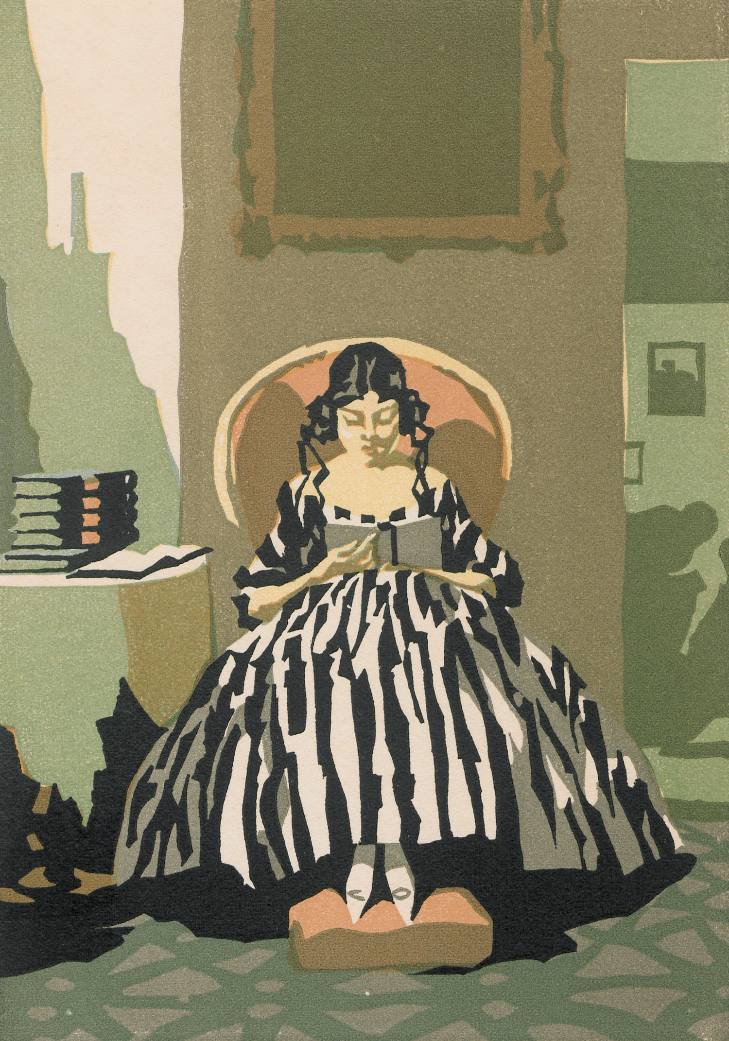Baudnik, Aemilian. Farbige Erlebnisse. Linoleumschnitte. Mit einem Geleitwort von Friedrich Düsel. 2 Bl. Mit 6 signierten Originallinolschnitten von Ae. Baudnik. 36 x 27,5 cm. Lose Bl. in illustr. OHalbleinen-Flügelmappe. Berlin, Volksverband der Bücherfreunde Wegweiser-Verlag, 1924.