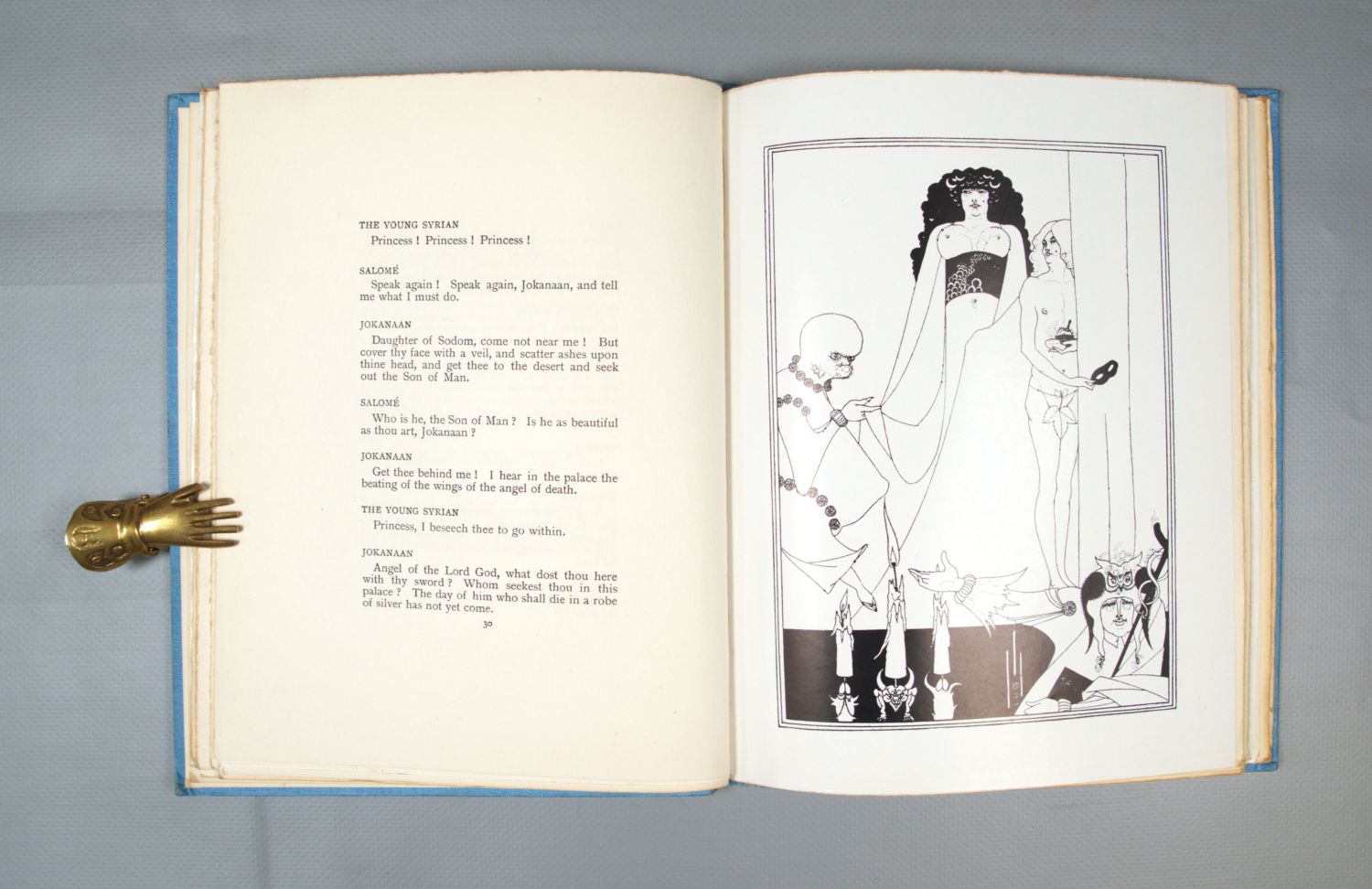 Beardsley, Aubrey. - Wilde, Oscar. Salomé. A tragedy in one act: translated from the French of Oscar Wilde. 75 S. Mit 16 ganzseitigen Illustrationen von Aubrey Beardsley. Hellblauer OLeinenband (etwas berieben) mit goldgeprägtem RTitel. London, Melmoth, 1904.
