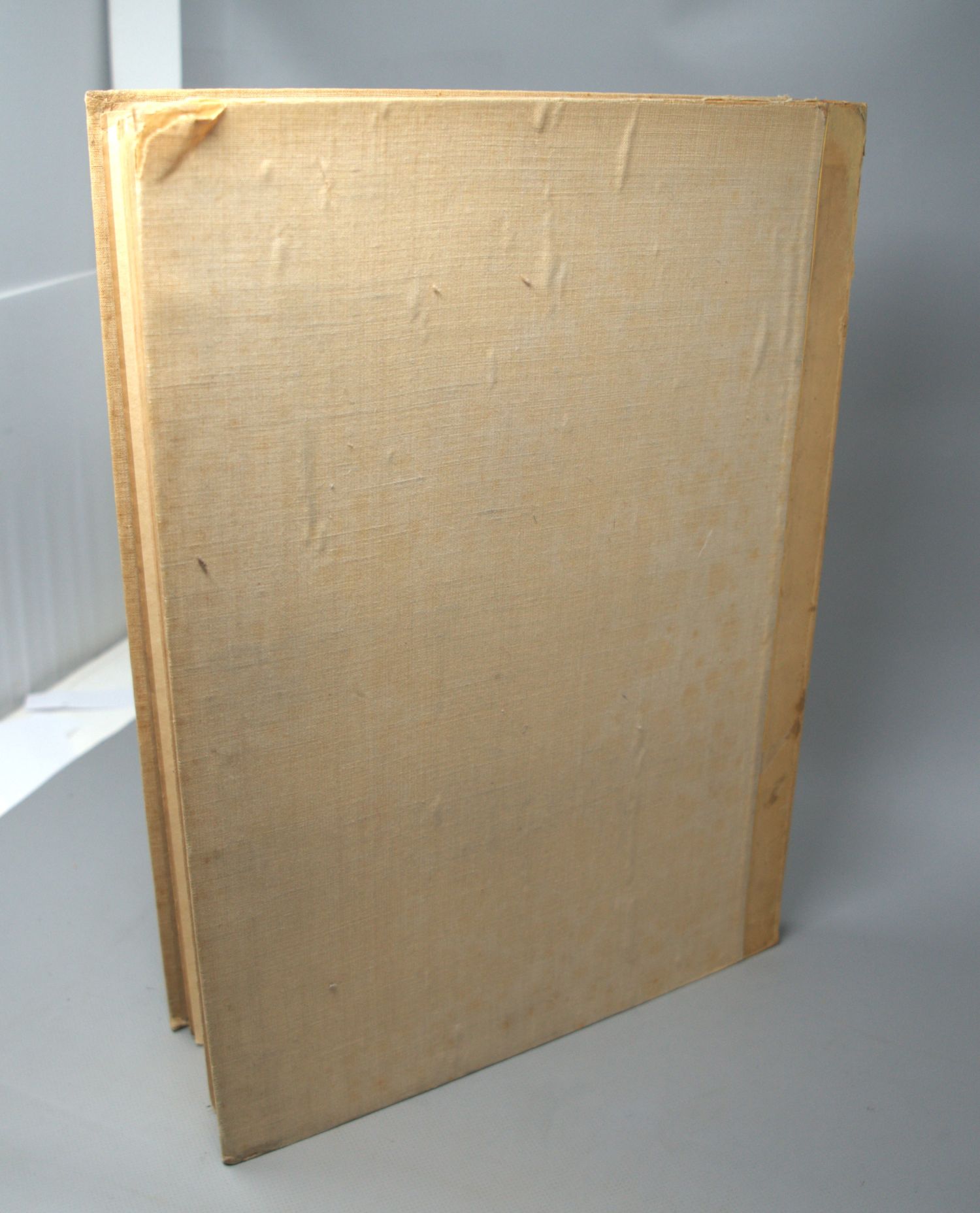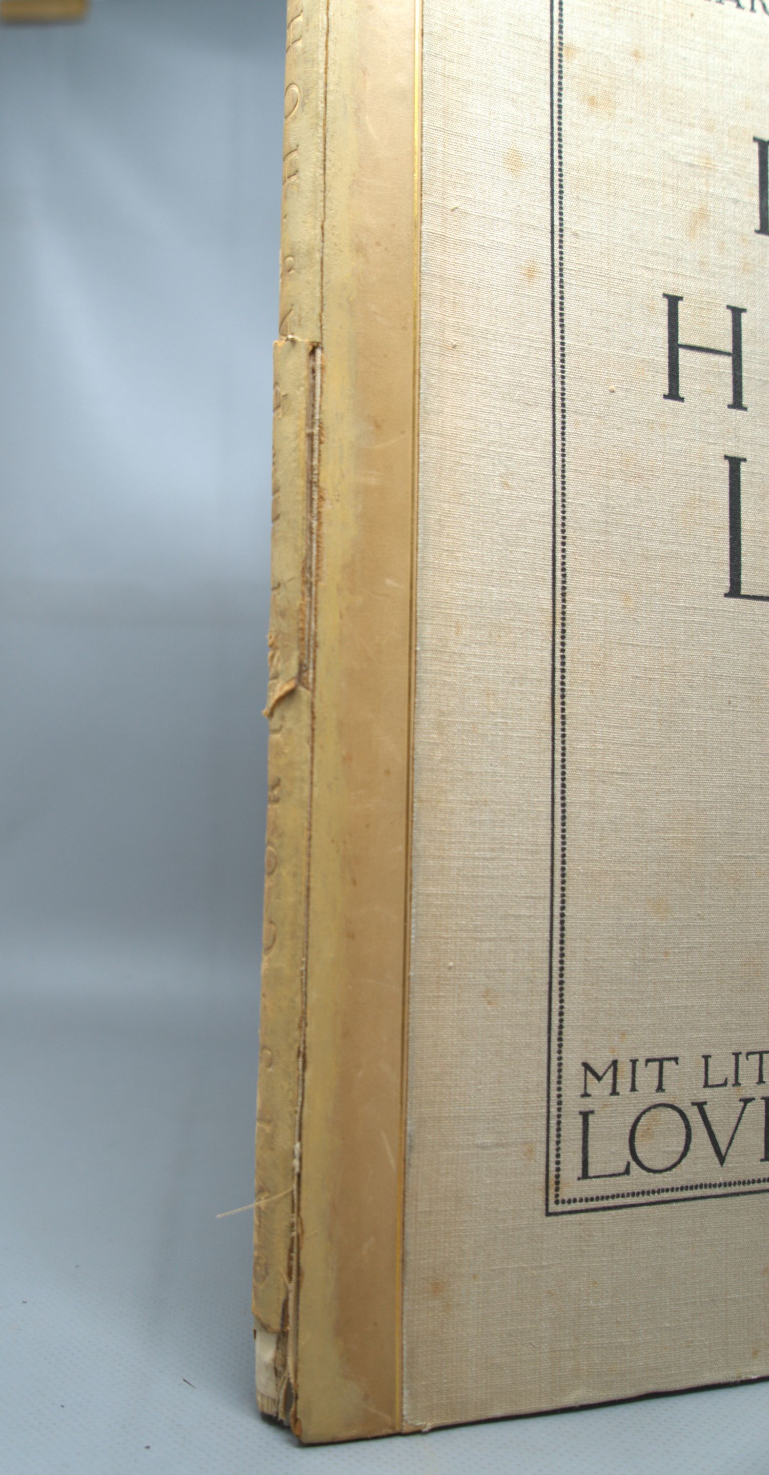Corinth, Lovis. Das Hohe Lied. 18 Bl. Mit 26 farbigen Original-Lithographien im Text und auf 10 Tafeln von Lovis Corinth. 44 x 32,5 cm. Crèmefarbener OHalbkalblederband mit goldgeprägtem RTitel und Deckelgoldfilete (gebräunt, Kanten beschabt, Gelenke brüchig und teils gebrochen, leicht geknickt) mit Seidenleinenbezug (fleckig, angestaubt, etwas unfrisch) und schwarzgeprägtem VDeckeltitel (Entwurf: Emil Rudolf Weiß). Berlin, Paul Cassirer, 1911.