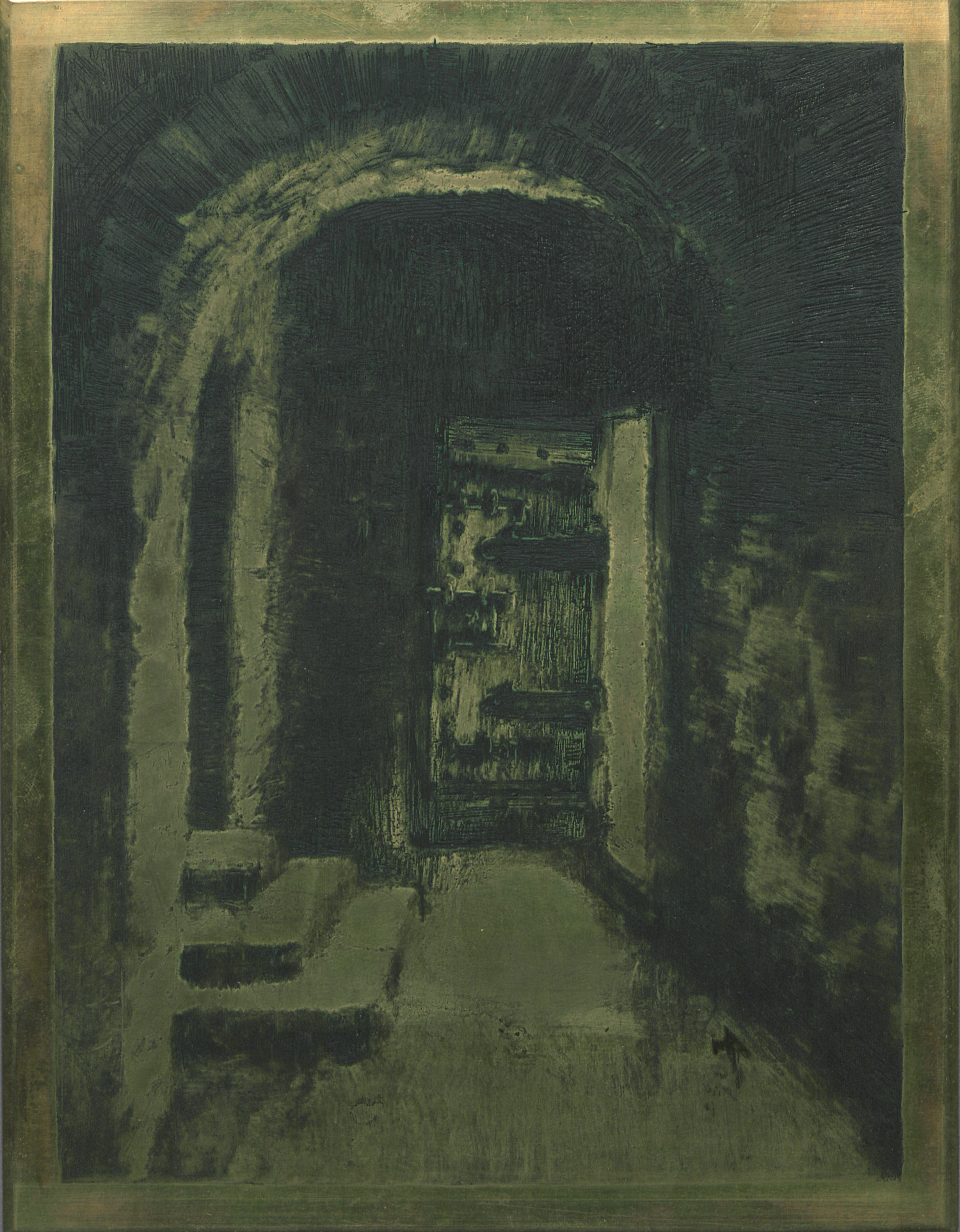 Icart, Louis. - Régnier, Henri de. Conte à soi-même. Le sixième mariage de Barbe-Bleue. Calligraphié et imagé de 45 monotypes gravés par Louis Icart. 94 Bl. Mit 45 blattgroßen Monotypien in Kupferstich (davon 11 mit Text) sowie 48 S. gestoch. Text, einer Extrasuite ohne rückseitigen Text als Zustandsdrucke mit Remarquen und einer vergold. Kupferplatte. 32 x 25 cm. Lose Doppelbogen bzw. lose Bl. in OUmschlag und OHalbpergamentchemise (etwas lädiert) und OSchuber. Paris, Le Livre d'Artiste, Le Vasseur et Cie., 1938.