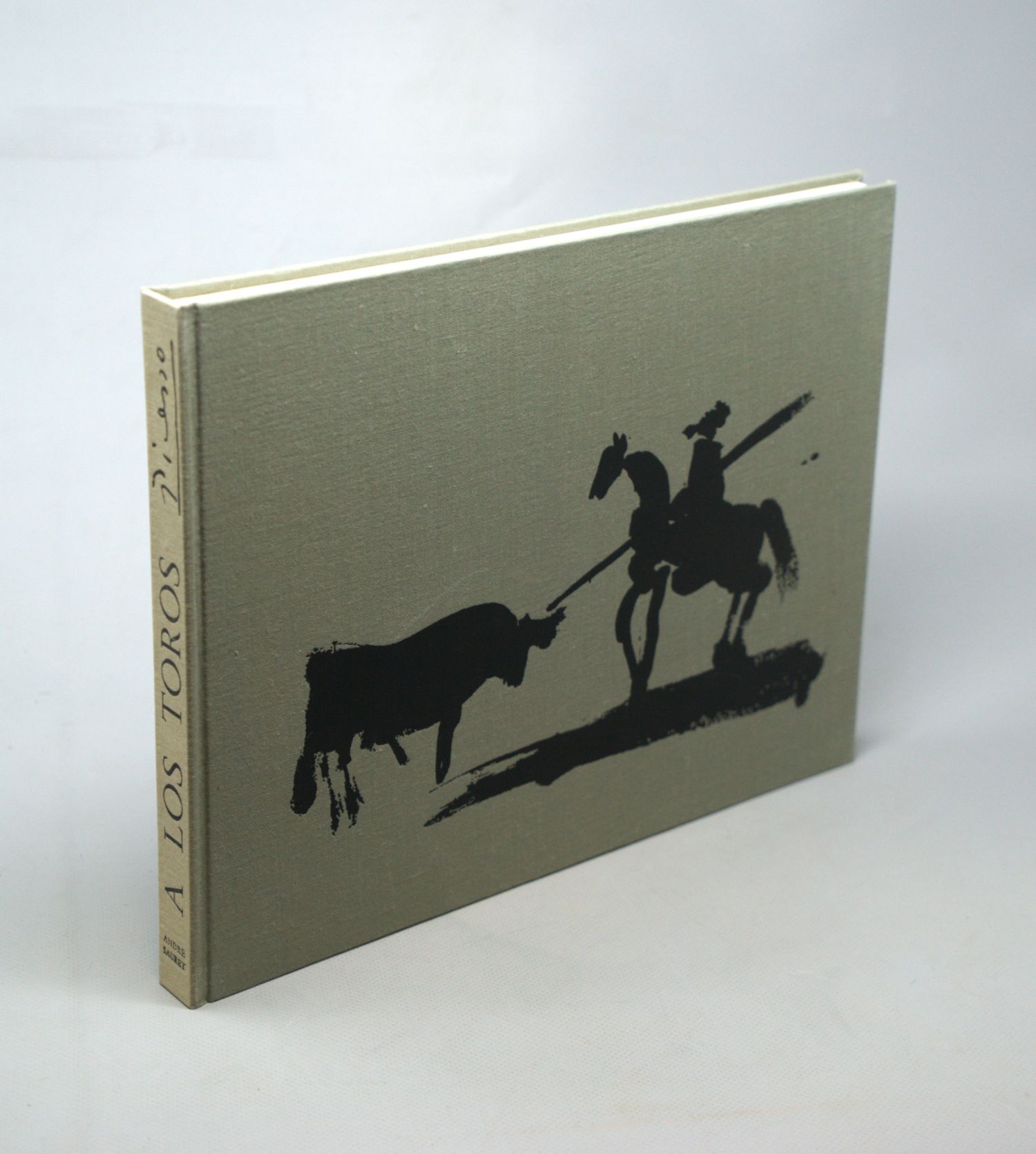 Picasso, Pablo. - Sabartés, Jaime. "A los toros" mit Picasso. 153 S. Mit 103 Abbildungen und 4 (1 farbigen) Orig.-Lithographien von Pablo Picasso. 25,5 x 32,5 cm. Illustrierter OLeinenband in illustriertem OPappschuber. (Monte Carlo), André Sauret, (1961).