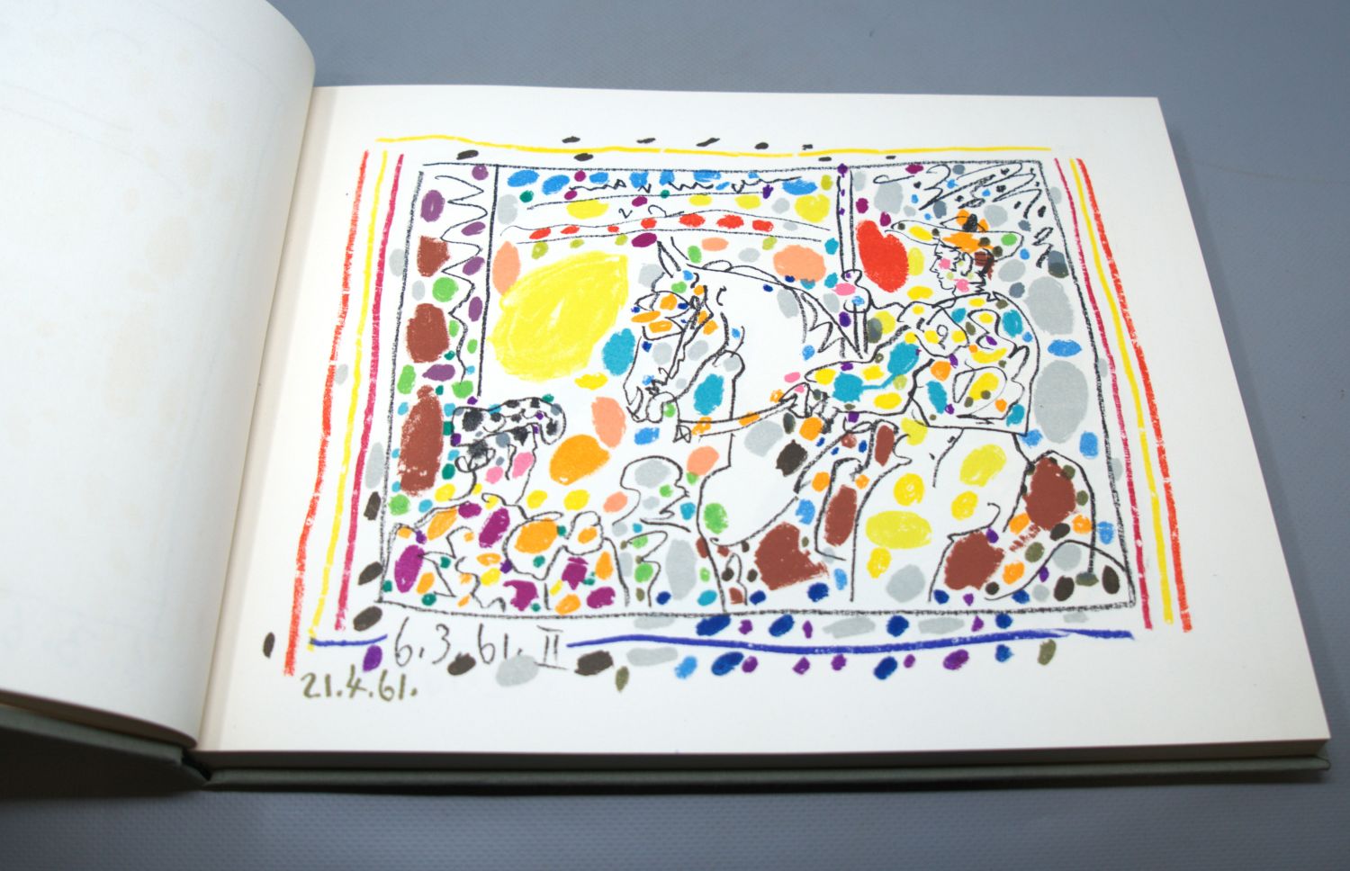 Bloch livres 108. Goeppert-Cramer 113. Mourlot 346 und 348-350. – Erste deutsche Ausgabe. Die vier Original-Lithographien wurden von Picasso eigens für dieses Werk geschaffen und von Mourlot gedruckt: "La Pique" (Bl. 1014), "Jeu de la Cape" (Bl. 1015), "Les Banderilles" (Bl. 1016) und die Farblithographie "Le Picador" (Bl. 1017). – Bemerkenswert schönes, nahezu verlagsfrisches Exemplar.
