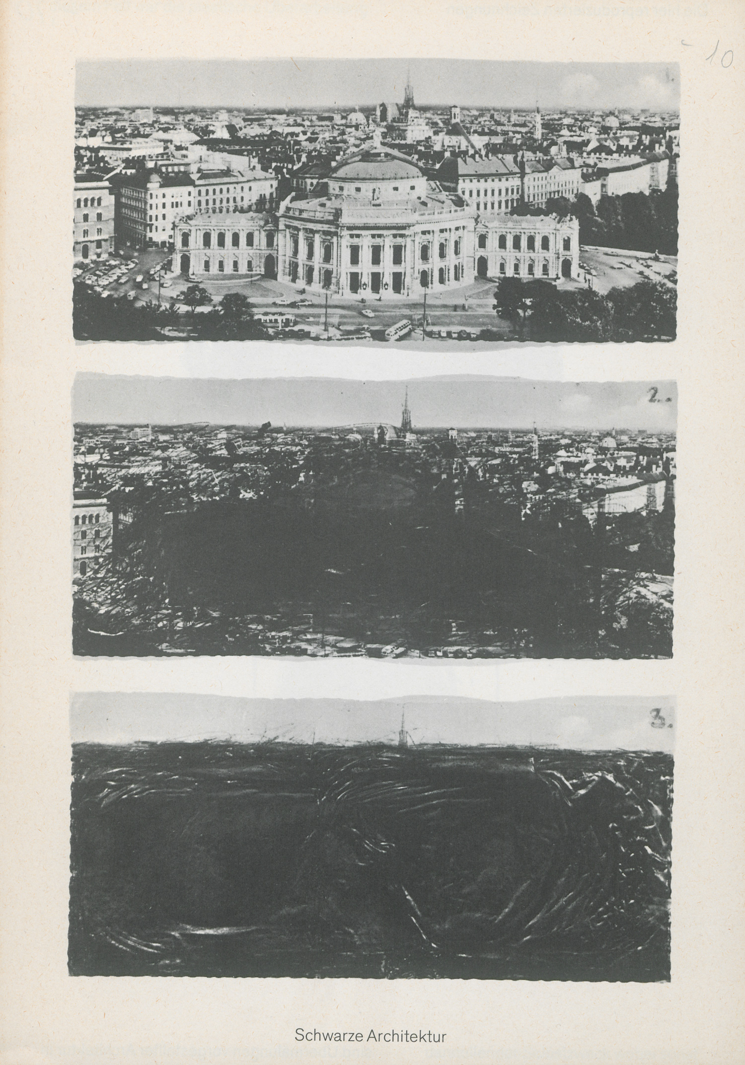 Rainer, Arnulf. Schwarze Architektur. Zusammengestellt von St. Wewerka. 6 Bl. mit Abb. 29,5 x 21 cm. Illustr. OBroschur. Berlin 1967.