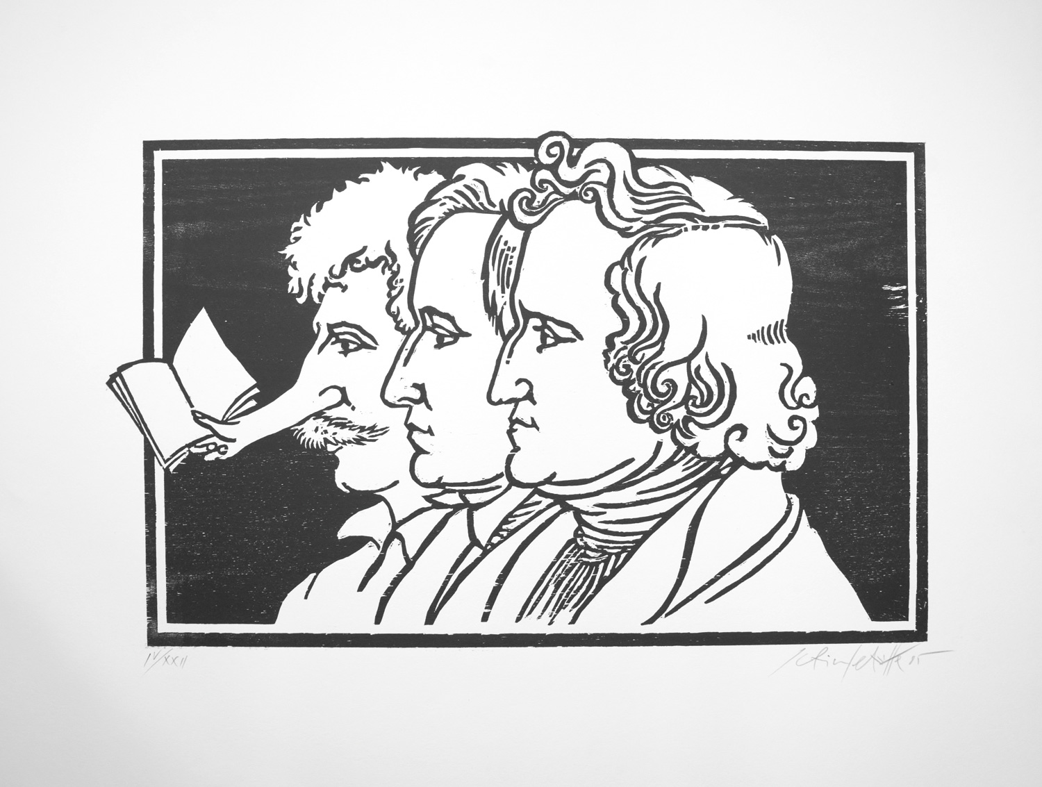 Eines von 22 römisch nummerierten Künstlerexemplaren (Gesamtauflage). Aufwendiger Handpressendruck von Ali Schindehütte (geb. 1939) mit den Holzschnitten auf schwerem Arches-Büttenkarton. "Die Holzschnitte entstanden im Sommer 1985 in Garten und Atelier Oevelgönne 51. Handpressendruck unter Mitarbeit von H. Bergmann und F. Siebrasse" (Druckvermerk). – Nahezu tadelos.
