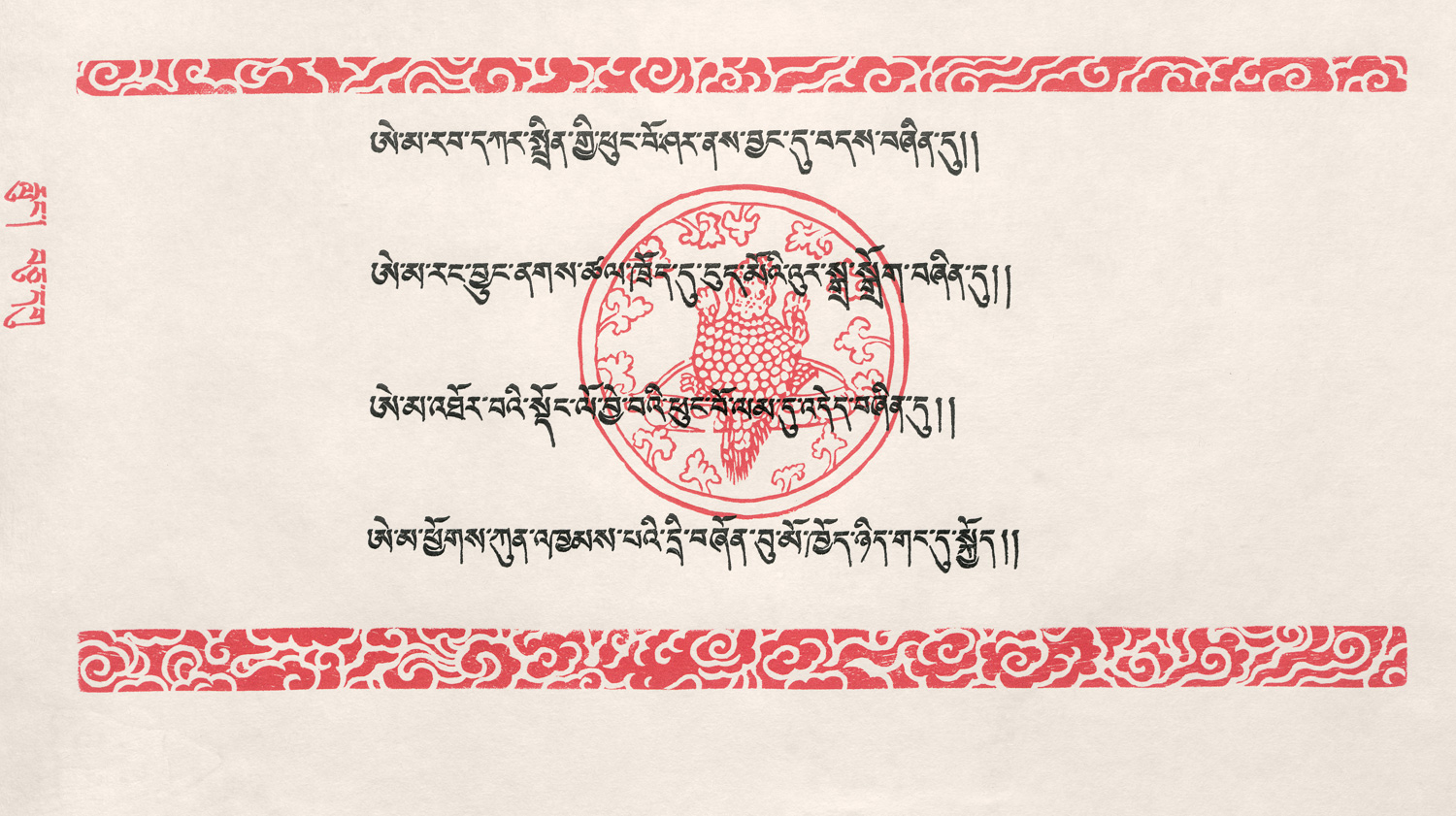 Der tibetische Text wurde von Pema Bhum in Poestenkill kalligraphiert. Inhaltlich thematisiert das Gedicht die Winde der vier Jahreszeiten als Sinnbild eines zyklischen Lebensverlaufs. Nach Gunnar Kaldewey erwarb der Bruder des Dalai Lama ein Exemplar und überreichte es dem Dalai Lama anlässlich dessen Besuchs in New York. – Nahezu verlagsfrisch.
