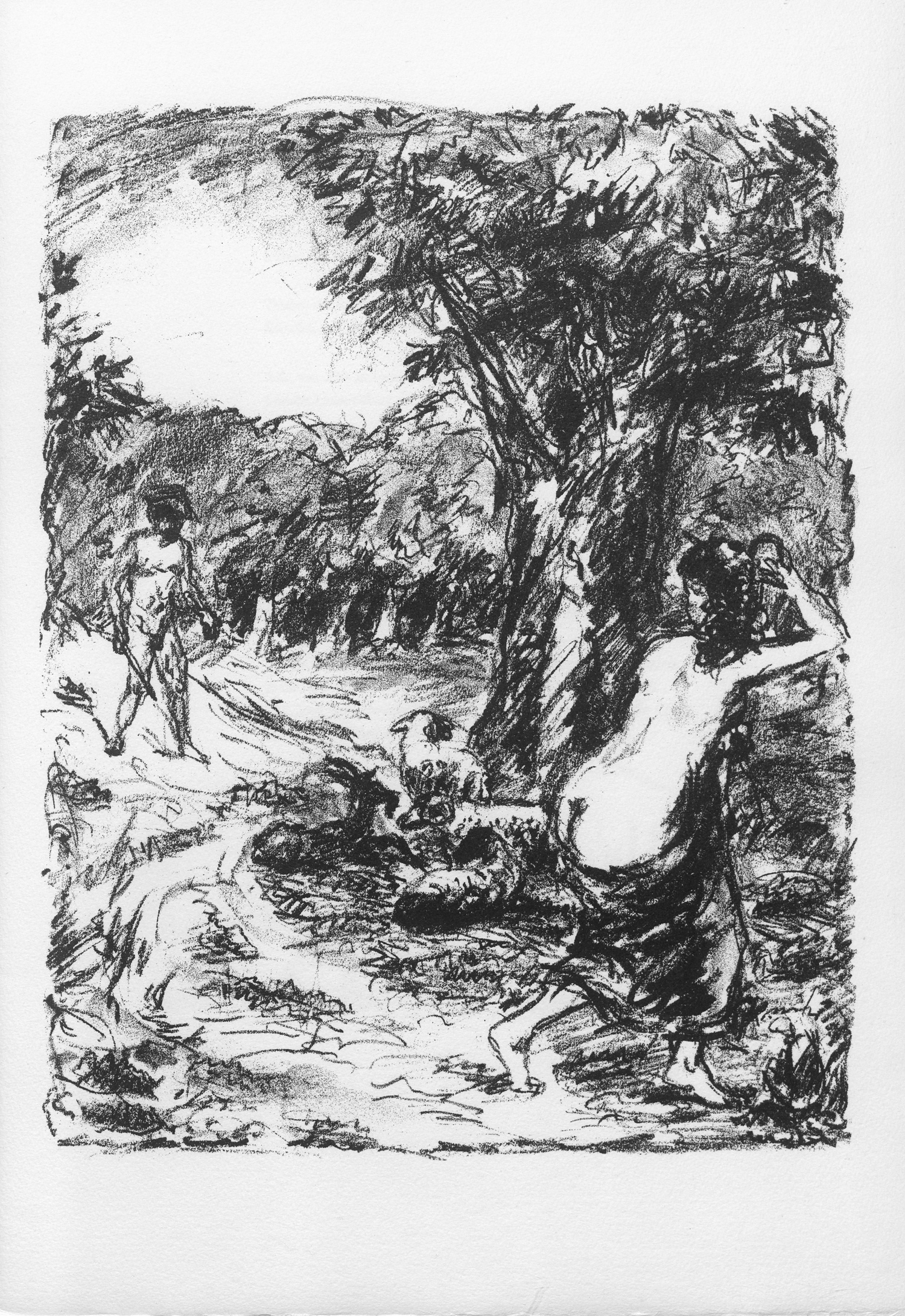 Vergilius Maro, Publius. Bucolica in der Übersetzung von Theodor Haecker. 28 Bl. Mit 17 (davon 2 signierten) Original-Lithographien von Robert Kirchner. 44,5 x 31 cm. Lose Bogen in illustrierter OLeinen-Mappe. München, Gesellschaft der Bibliophilen, 1974.