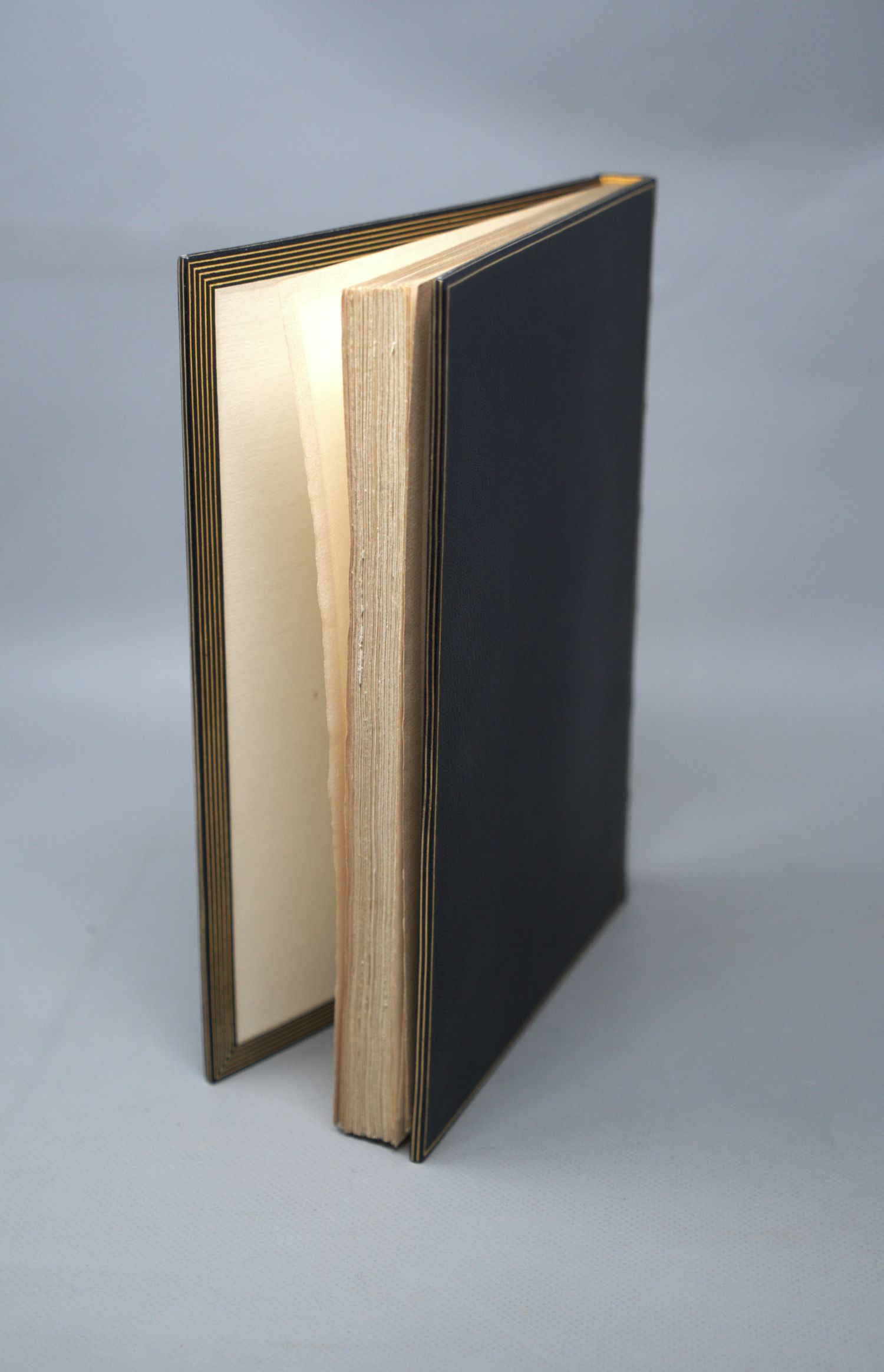 Walther von der Vogelweide. Die Gedichte. 175 S, 4 Bl., 1 w. Bl. 27 x 18,5 cm. Dunkelblauer OChagrinlederband mit vergold. Deckel-. Stehkanten und Innenkantenfileten, RVergoldung und KGoldschnitt. (Leipzig, Insel, 1926).
