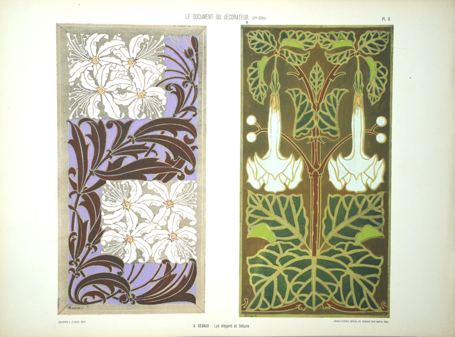 Enthält Tafeln mit Darstellungen floraler Motive und Ornamente von Seguy, Ségaud, Bolliger, Peterelle, Belet u. a. – Es fehlt Tafel 11; Tafel 1 angeschmutzt und mit Randläsuren, einige weitere Tafeln etwas gebräunt, ansonsten in guter, farbfrischer Erhaltung.