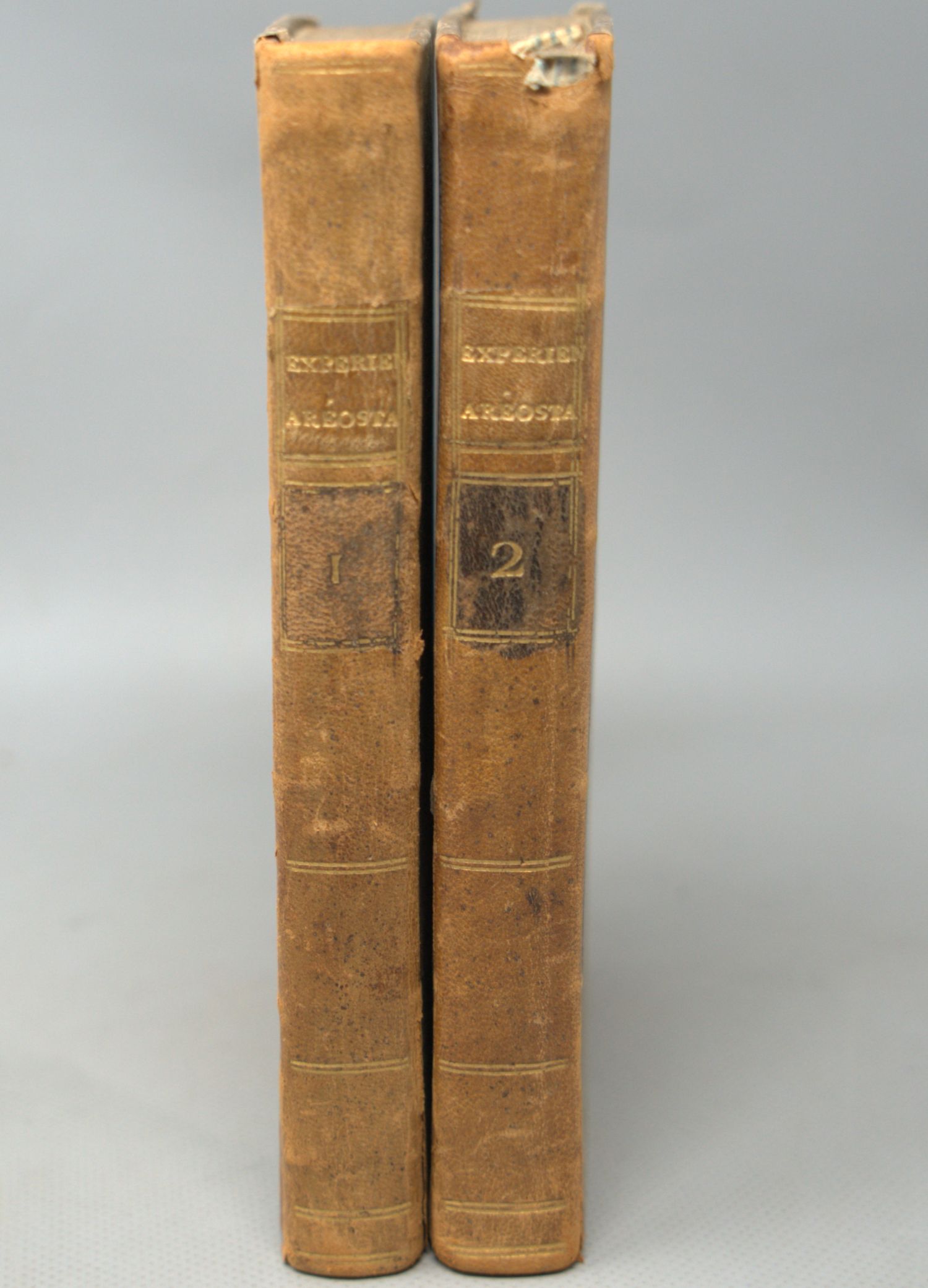 Faujas de Saint-Fond, (B.). Description des expériences de la machine aérostatique de MM. de Montgolfier (avec "Première suite"). 2 Bände. XL, 299 S., 3 Bl.; 1 Bl., 366 (recte 364) S., 1 Bl. Mit 14 Kupfertafeln und Falttabelle. 20 x 13 cm. Halblederbände d. Z. (ein Gelenk angebrochen, Kapital mit leichtem Defekt). Paris, Cuchet, 1783-1784.