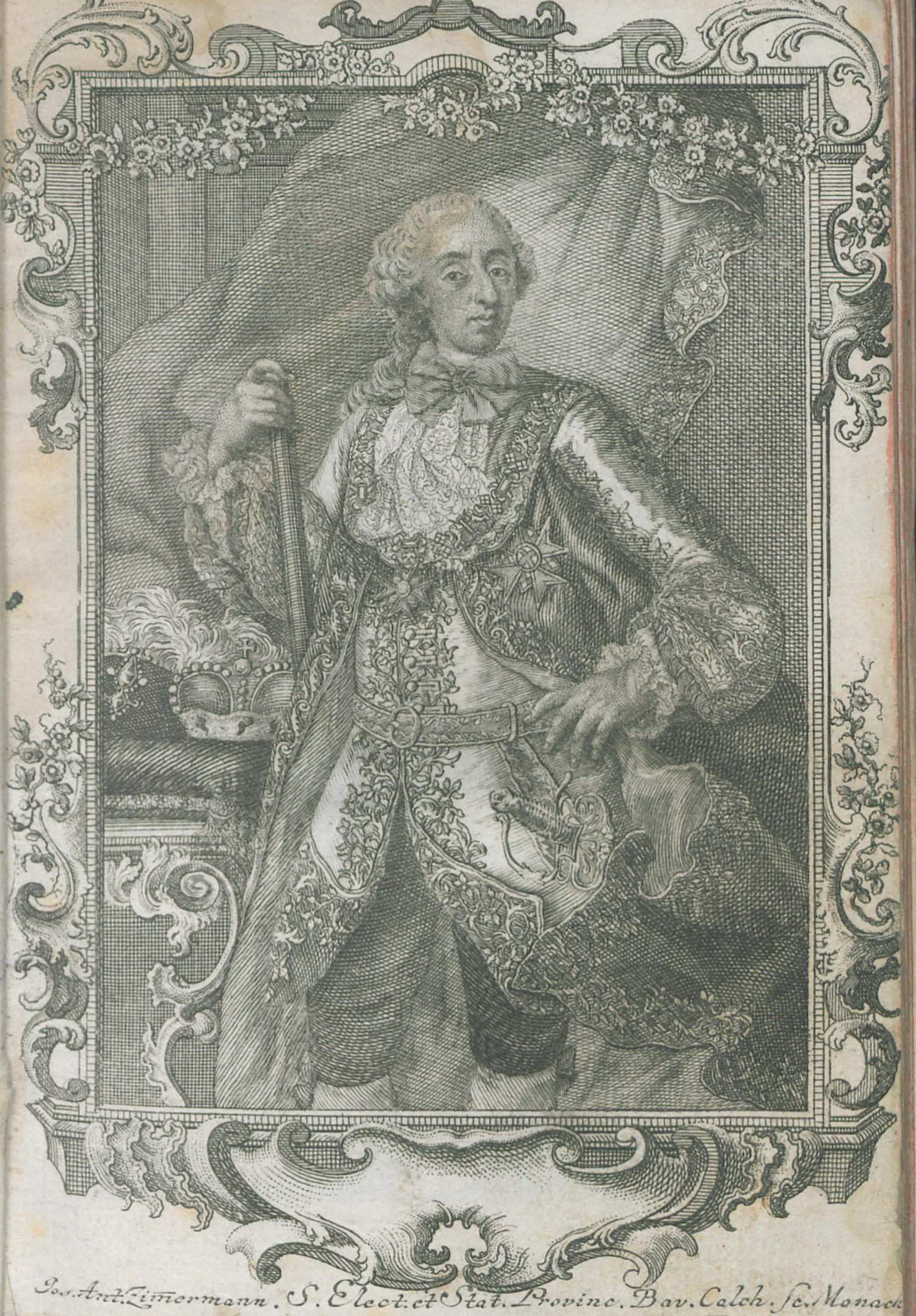 Vgl. Pfister I, 2732. Bernd 2409. – Bayrischer Wappenkalender aus dem Jahre 1770 mit zahlreichen Kupferporträts und -Wappen. – Vorderes Innengelenk offen, braun- und fingerfleckig, feuchtrandig, mit Randläsuren und mit wenigen Einrissen.
