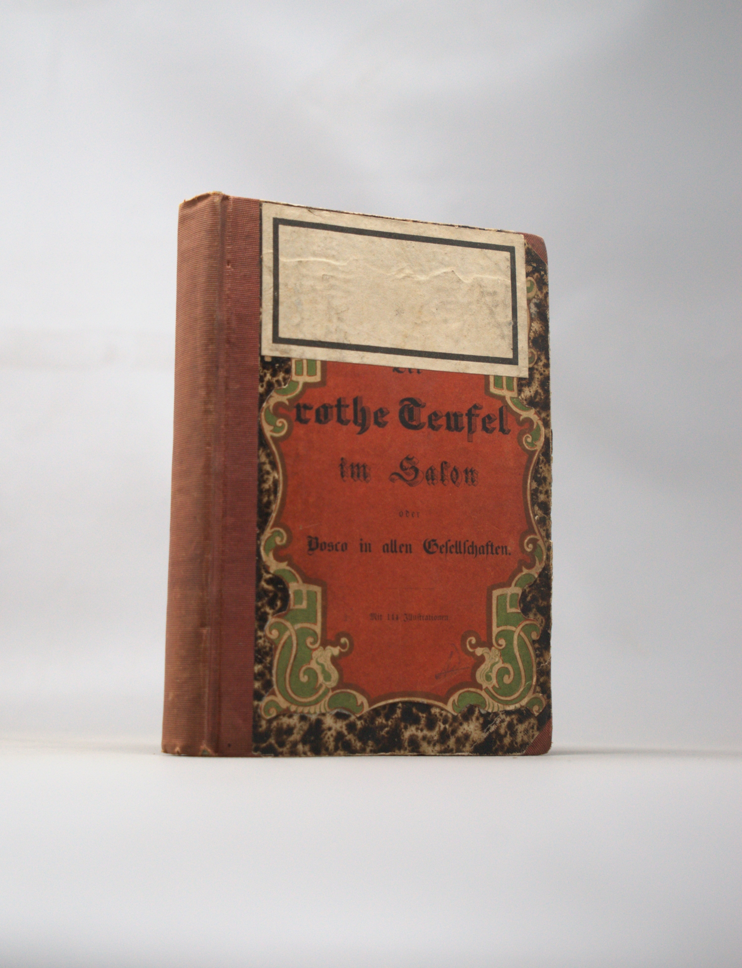 Der rothe Teufel im Salon oder Bosco in allen Gesellschaften. XVI, 265 S. Mit Frontispiz und 144 Textholzstichen. 17 x 12 cm. Halbleinen d. Z. (mit großem zeitgen. Etikett auf dem Vorderdeckel). Weimar, Voigt, 1858.