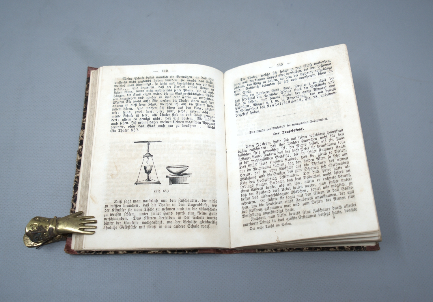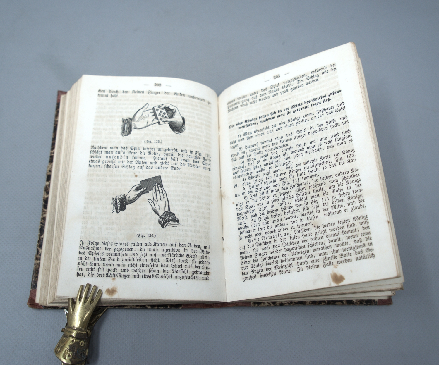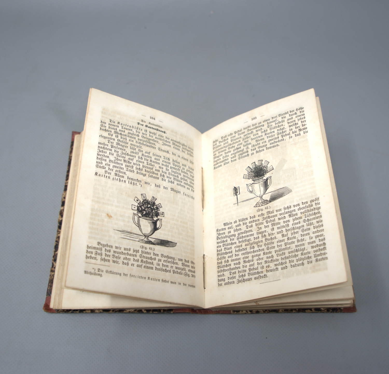 Clarke-Blind 67. Volkmann 146. – Erste Ausgabe. Mit Kapiteln zur kleinen und großen Zauberkunst, zur Kunst des Escamotierens, zu Kartenkunststücken und Gesellschaftsspielen. – Mit montiertem zeitgen. Etikett auf dem Innenspiegel. Papierbedingt gebräunt, insgesamt in guter Erhaltung.