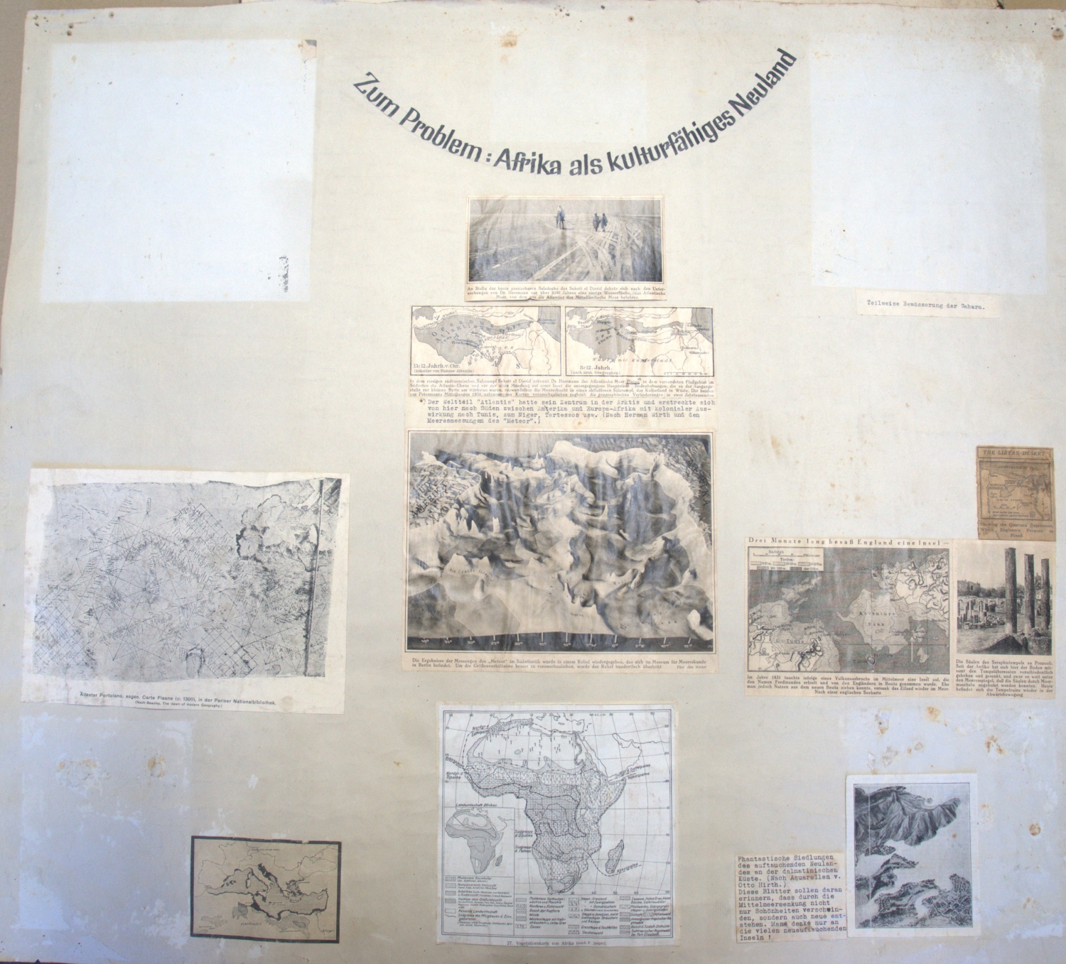 8) "Zum Problem: Afrika als kulturfähiges Neuland". Kollagekarton mit 10 (statt 12) aufmontierten Zeitungsausschnitten u.a.