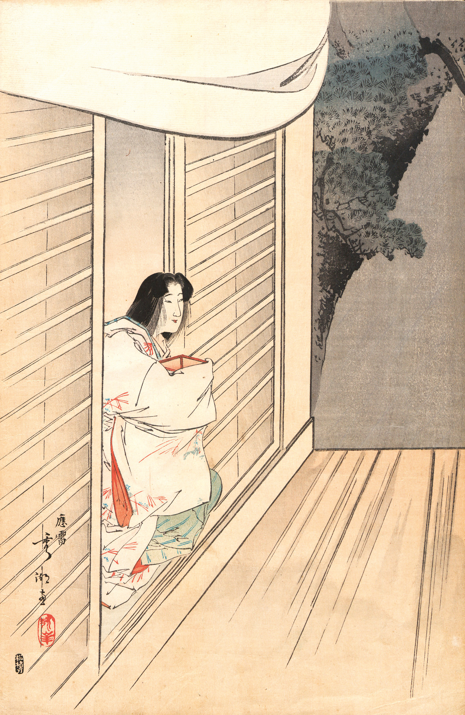 Schöne Nachdrucke nach Utamaro (1753-1806), Harunobu (1725-1770) und Kiyomine (1787-1868). Einzelne Bijins oder Gruppen in prachtvollen Kimonos, im Interieur oder unter blühenden Zweigen. – Von sehr guter Erhaltung.