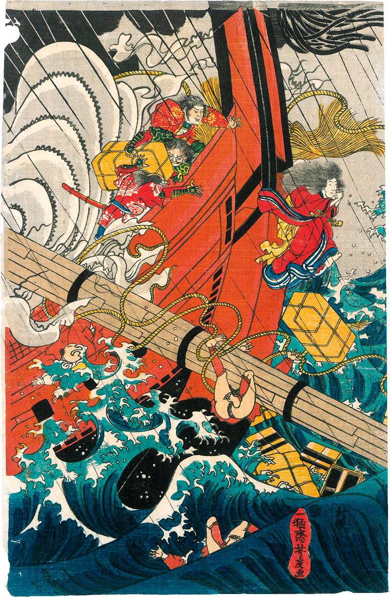 Konvolut von ca. 50 Farbholzschnitten verschiedener Künstler mit Darstellungen von u. a. Kriegern, Schauspielern, Legenden und Schlachten